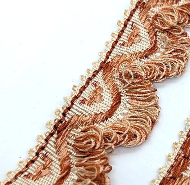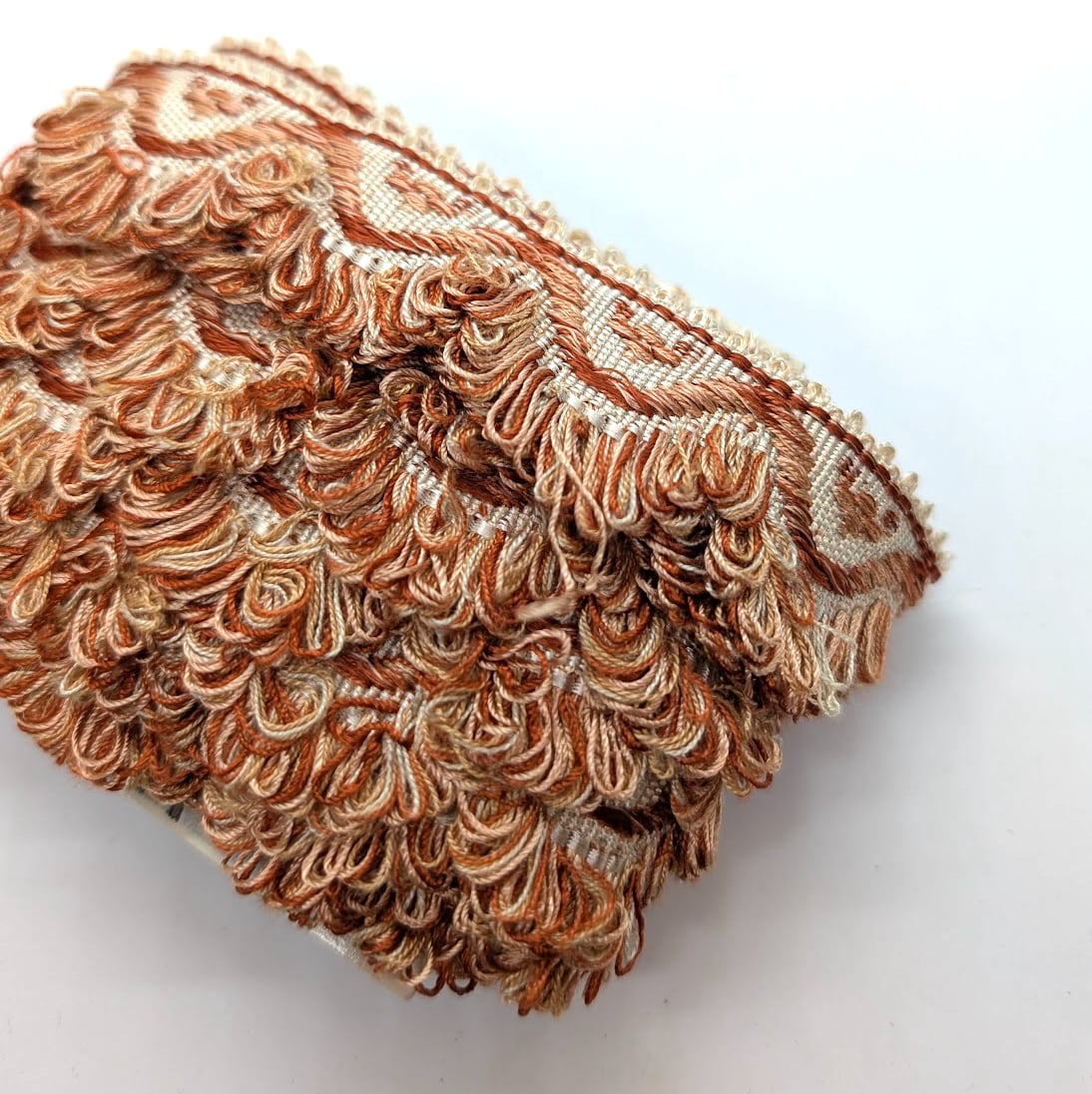 カーテンやクッション、照明シェードの縁の装飾で華やかに見せるために使われるテープ状のもの。カーテンの裾に縫い付けたり、ランプシェードの下端に貼り付けたり、最近ではかごバックやクッションの縁に縫い付ける方もいます。