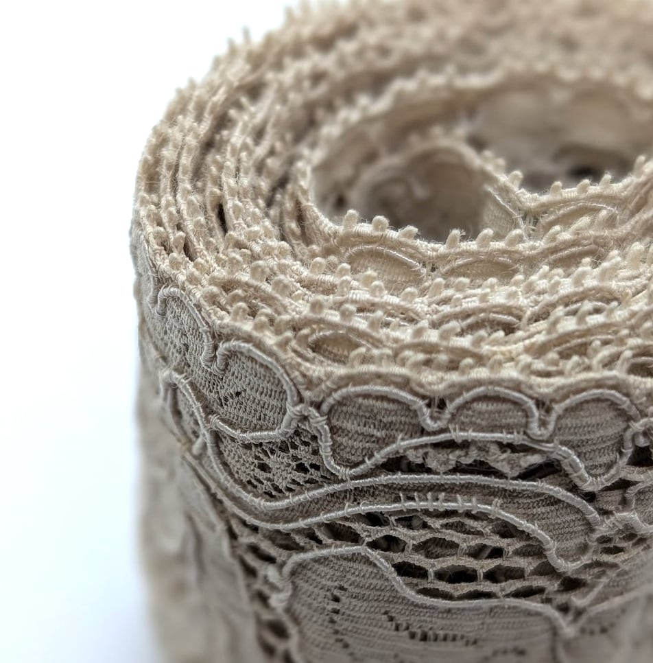 ここまで手の込んだレース織りのトリムはなかなかないですね。