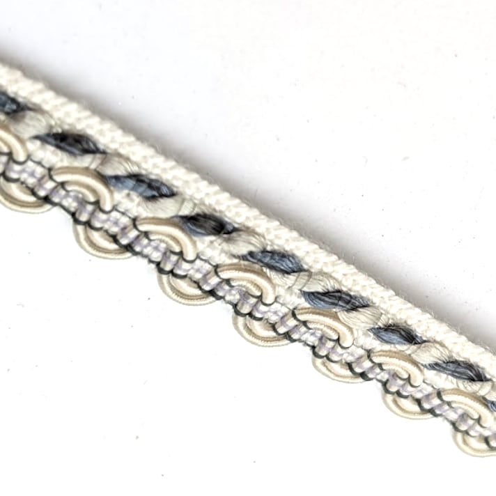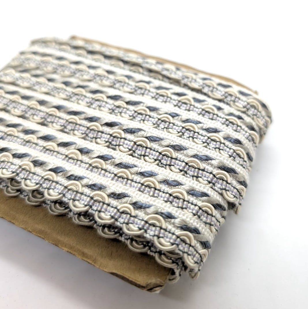 カーテンやクッション、照明シェードの縁の装飾で華やかに見せるために使われるテープ状のもの。カーテンの裾に縫い付けたり、ランプシェードの下端に貼り付けたり、最近ではかごバックやクッションの縁に縫い付ける方もいます。