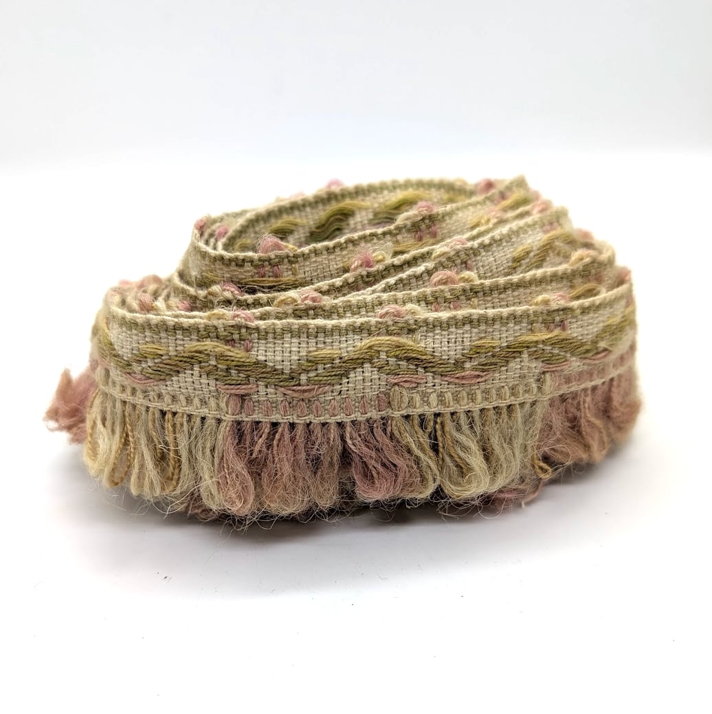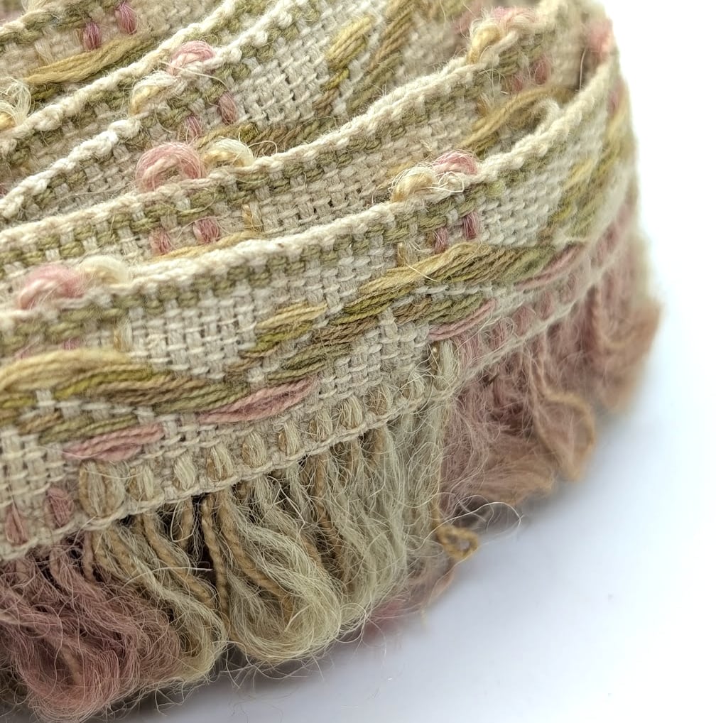 淡いグリーンとピンク麻のフリンジが素朴で素敵です。