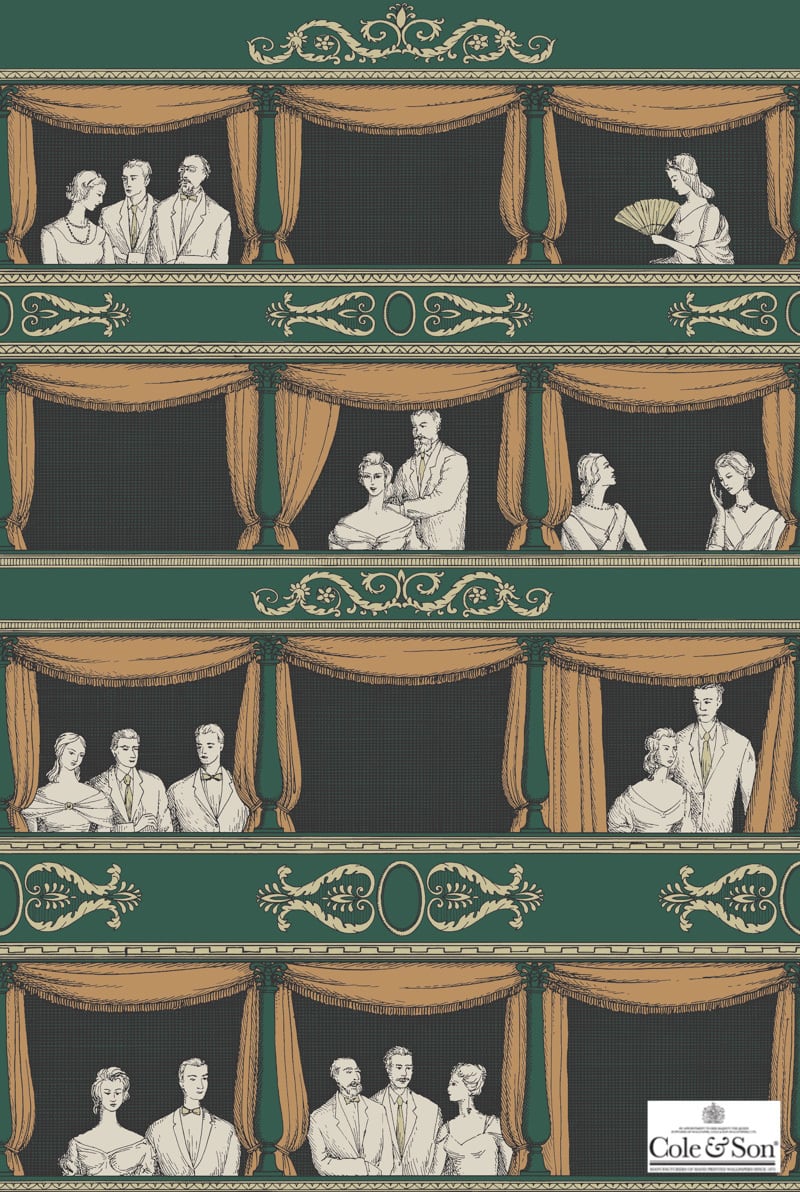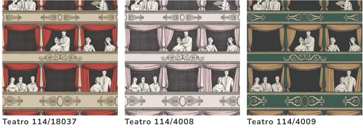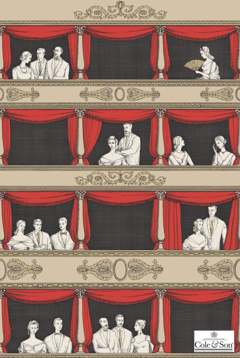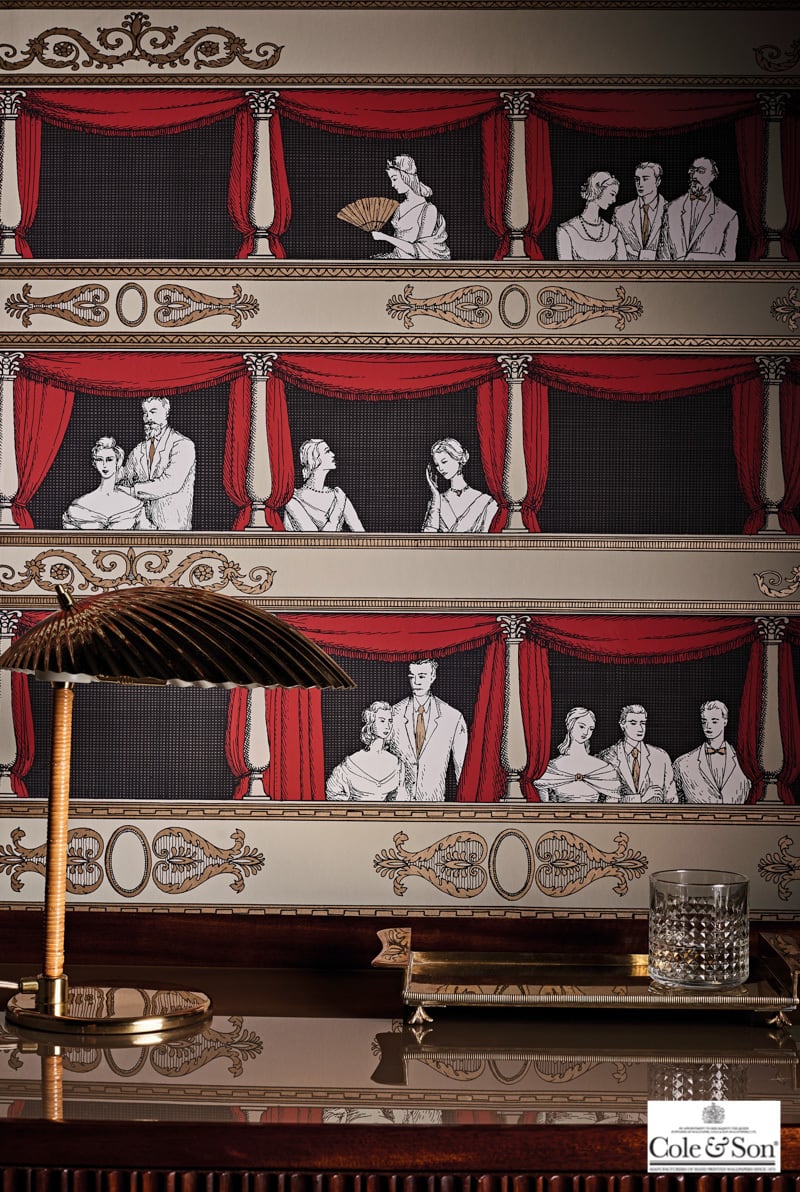 フォルナセッティは観劇が大好きでイタリアのオペラから1950年頃にデザインされた壁紙で、壁に貼ると自分が主役になれます。