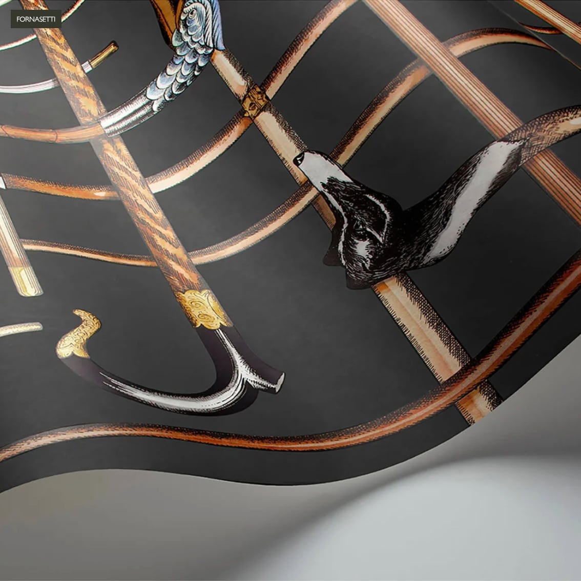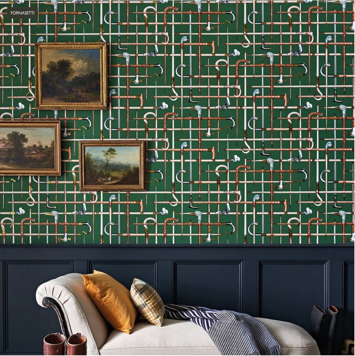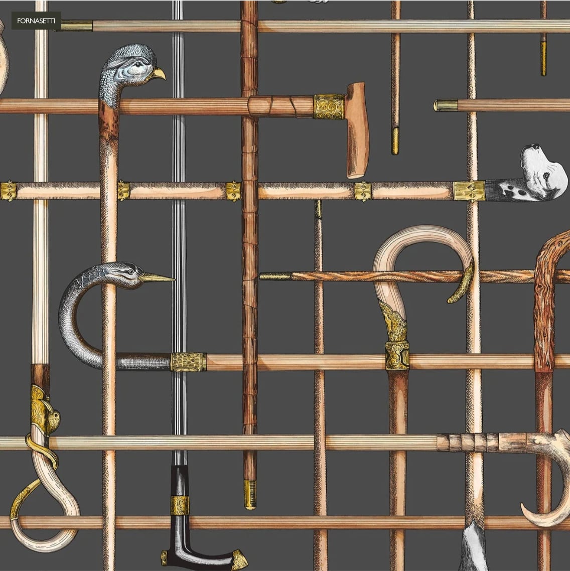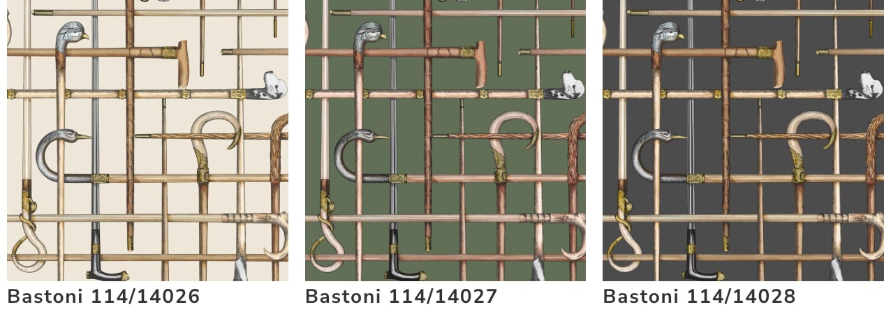 1940年代のシルクスカーフからFornasettiがデザインしたBastoniの杖の壁紙。