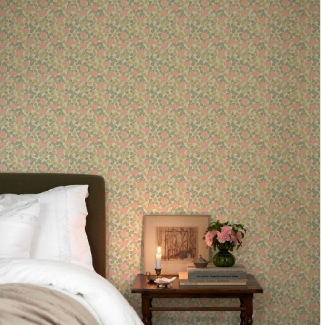 北欧スウェーデンの王室が使っていたスウェーデン最古の老舗壁紙メーカーのヴィンテージ壁紙です。この蓮華の花の模様の可愛い壁紙は、アールヌーボーの時代、ストックホルムのエステルマルム刑務所の所長の住居に貼られていたものだそうです。