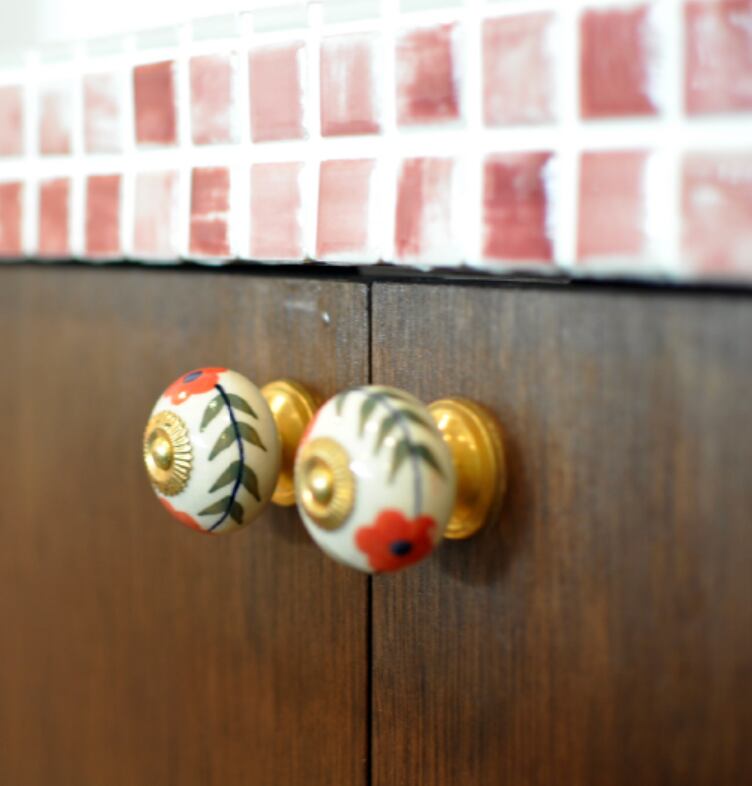 まるで宝石箱のような取っ手を目の前に、ワクワクしながらどれを買うか悩んだ末、柄違いをいくつか買いました。