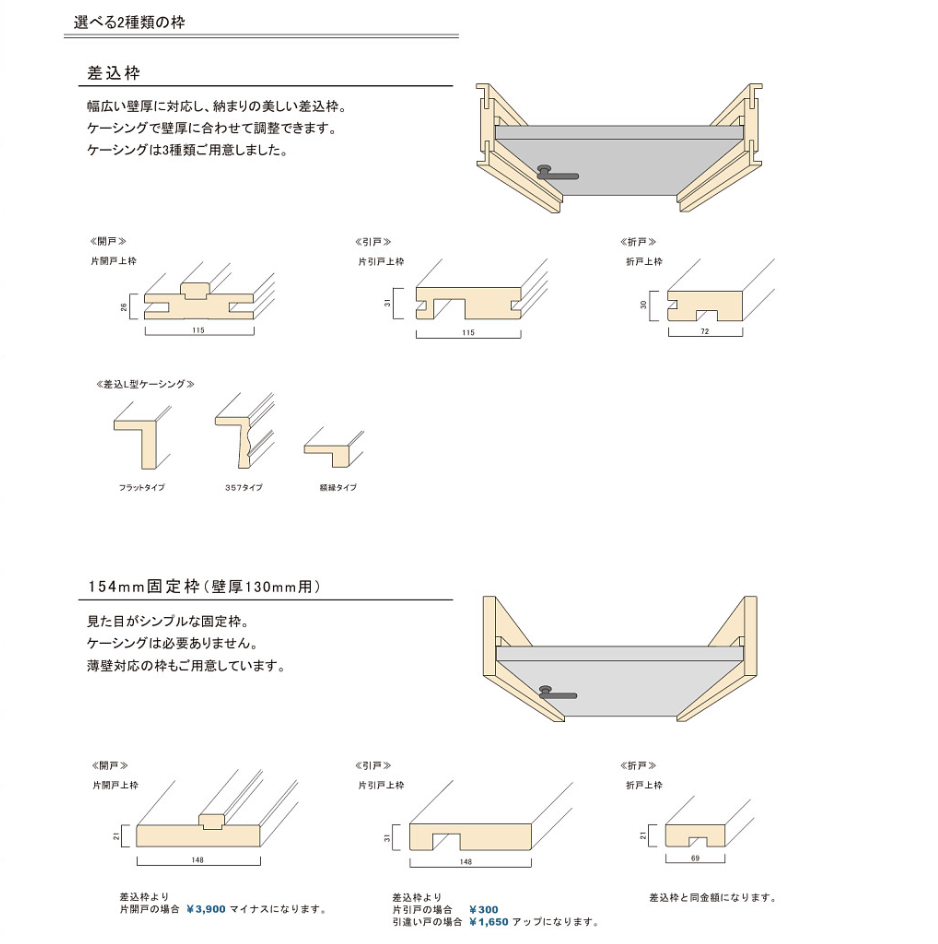 引き戸 固定枠 +15,100円 差込枠 +31,700円 2枚セットの引違戸にすることもできますのでお問い合わせください。