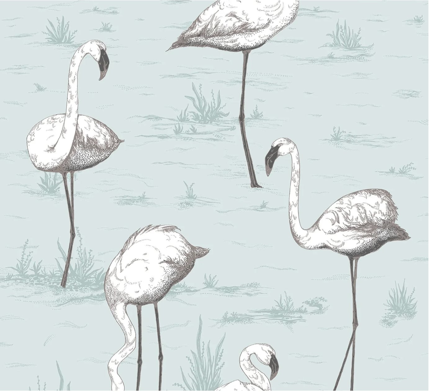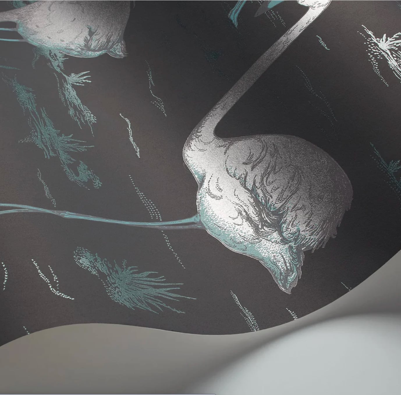 ポール&ジョーが全国の店舗で実際に使用したフラミンゴ(上写真)。この壁紙は、日本のファッション業界で輸入壁紙の良さを伝えるきっかけとなりました。〔66/6044〕(サイズ:52cm×10m、¥22,000/1ロール)
