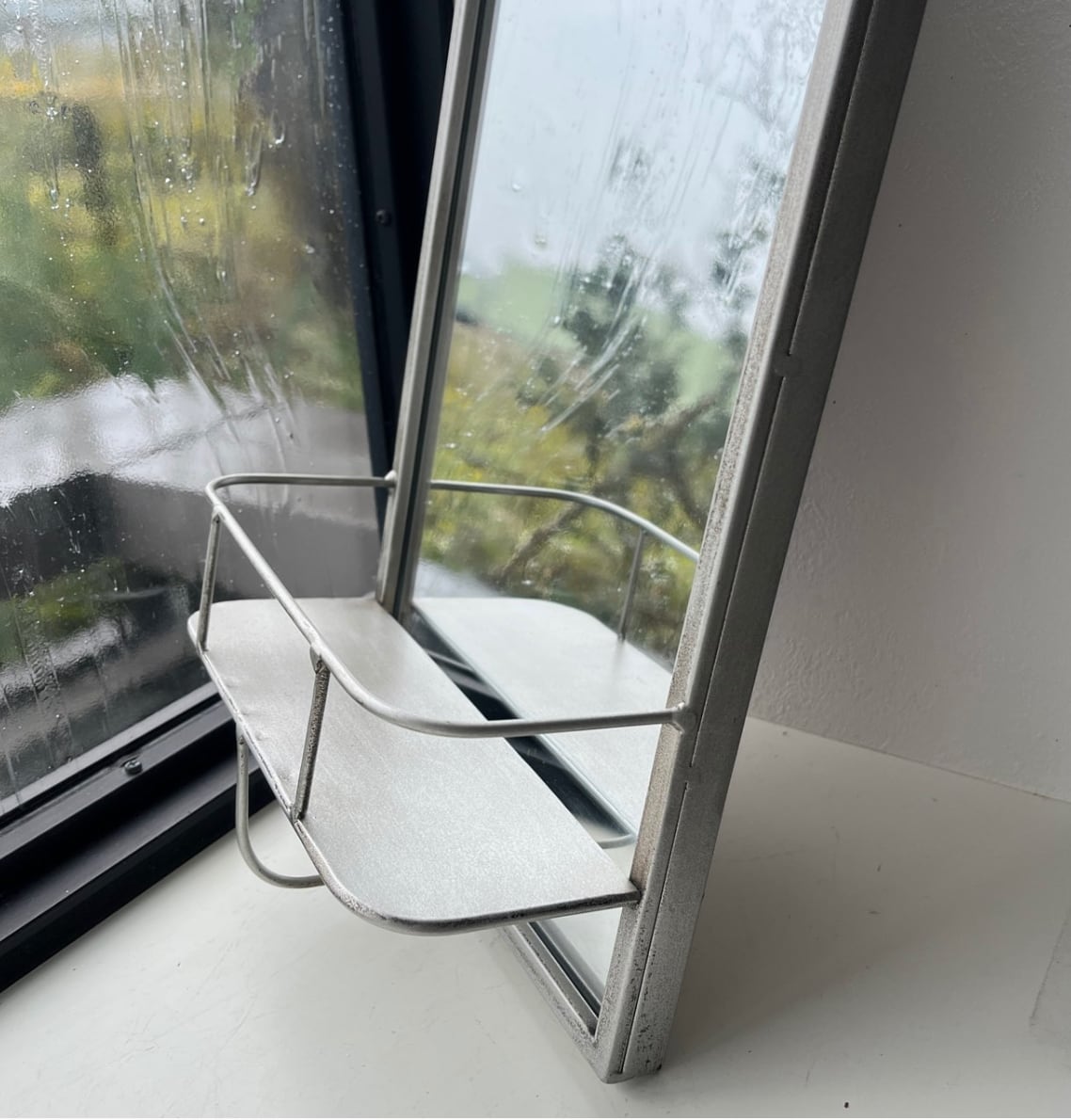 ミラーに棚もついているので、洗面所や玄関などにいかが?